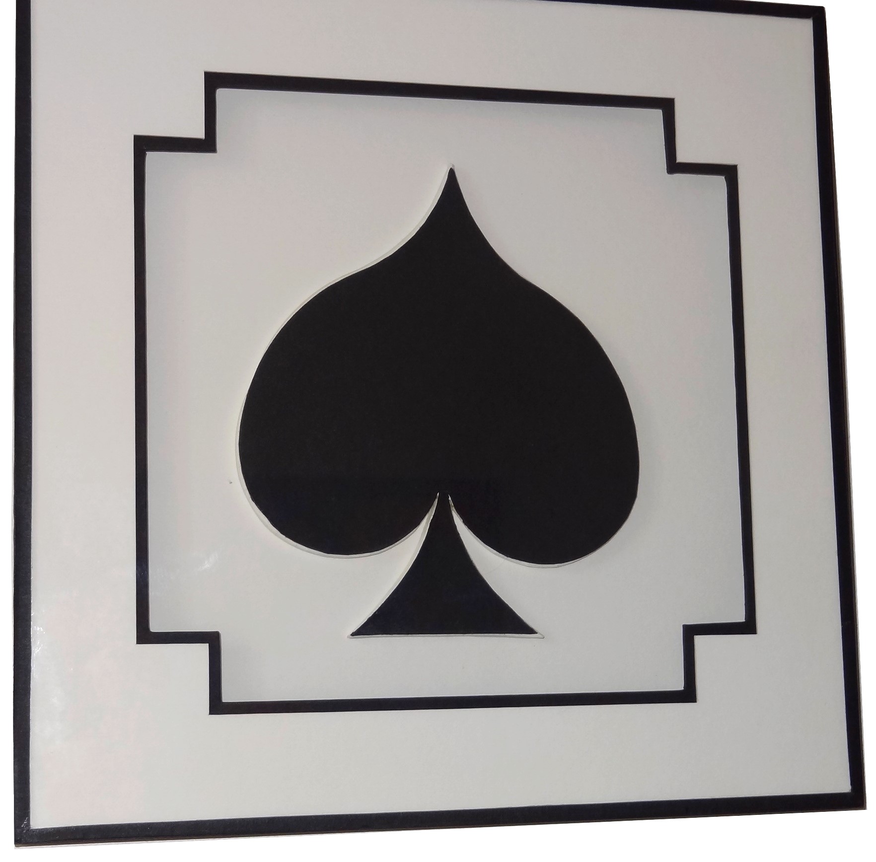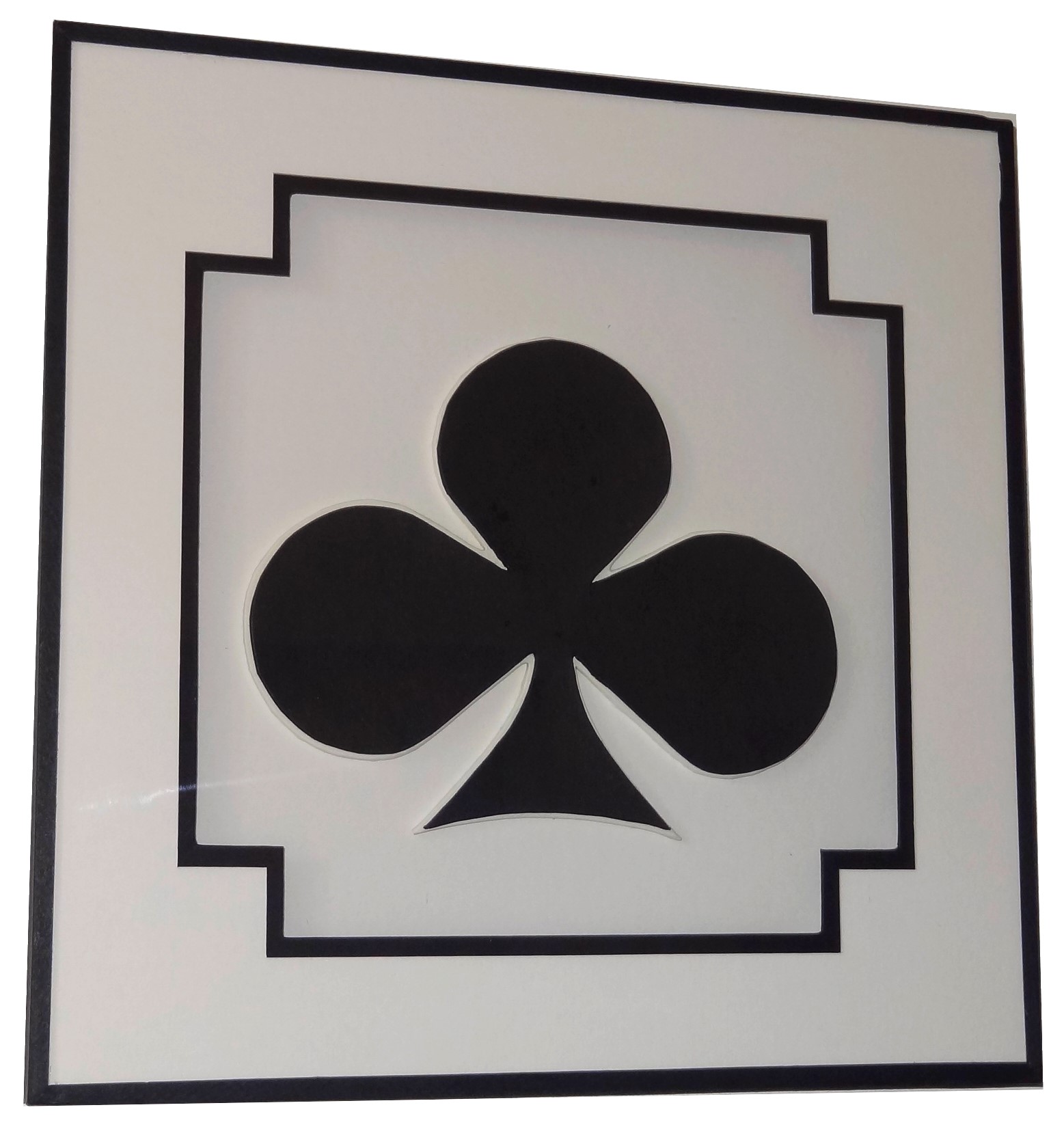 Ensemble de créations réalisées avec un triple cache, un biseau anglais en forme de cœur, de pique, de trèfle et de carreau et une bordure en papier.