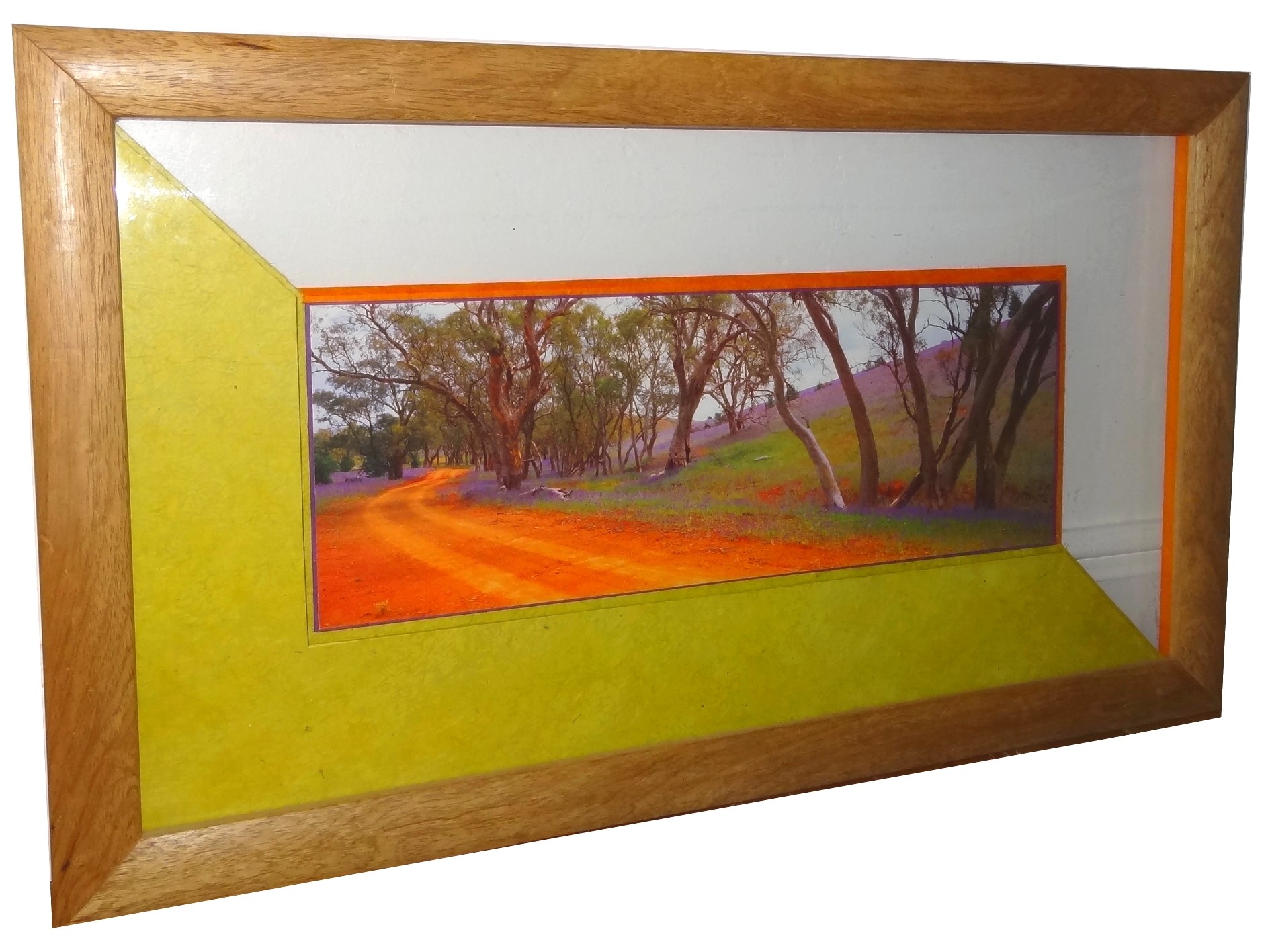 L’affiche est encadrée entre 2 verres, avec un double cache et en biseau anglais.