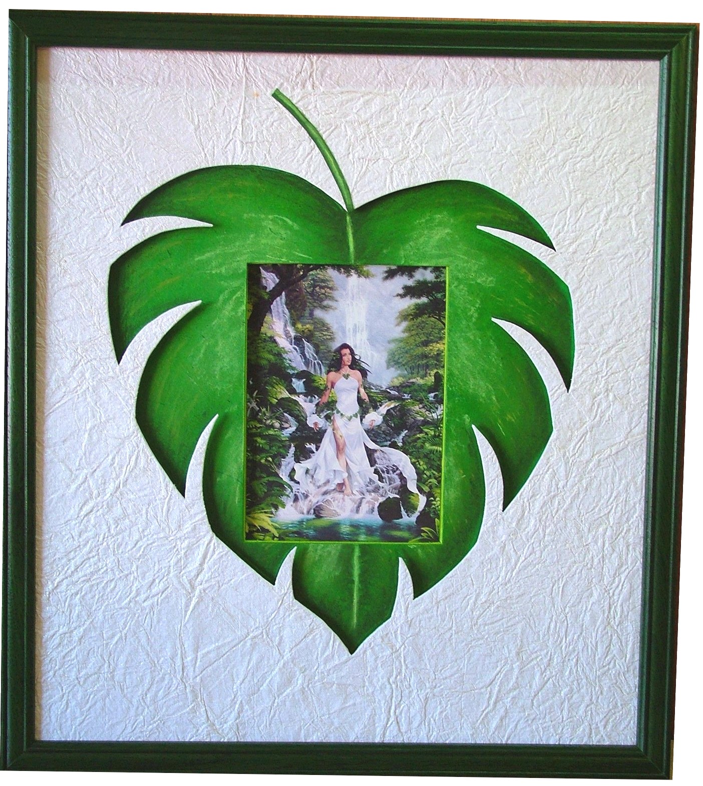 Cette carte postale est mise en valeur par le double cache en forme avec le dessin de la feuille.