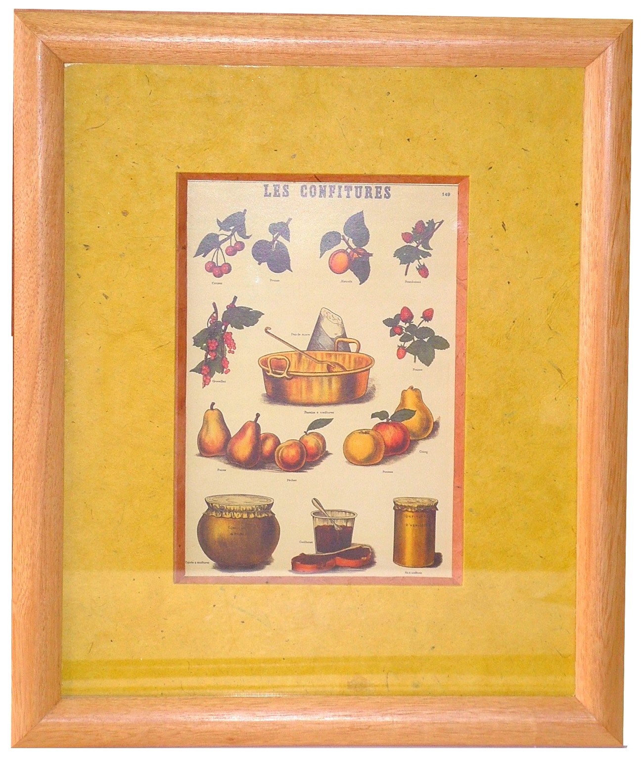 La carte est encadrée par biseau anglais (à 45°) dans un cadre en bois rappelant l’origine naturelle de la confiture. Le cache jaune orangé peut évoquer différentes confitures d’agrumes selon les goûts de chacun. Ce cadre sera idéal pour agrémenter votre cuisine.