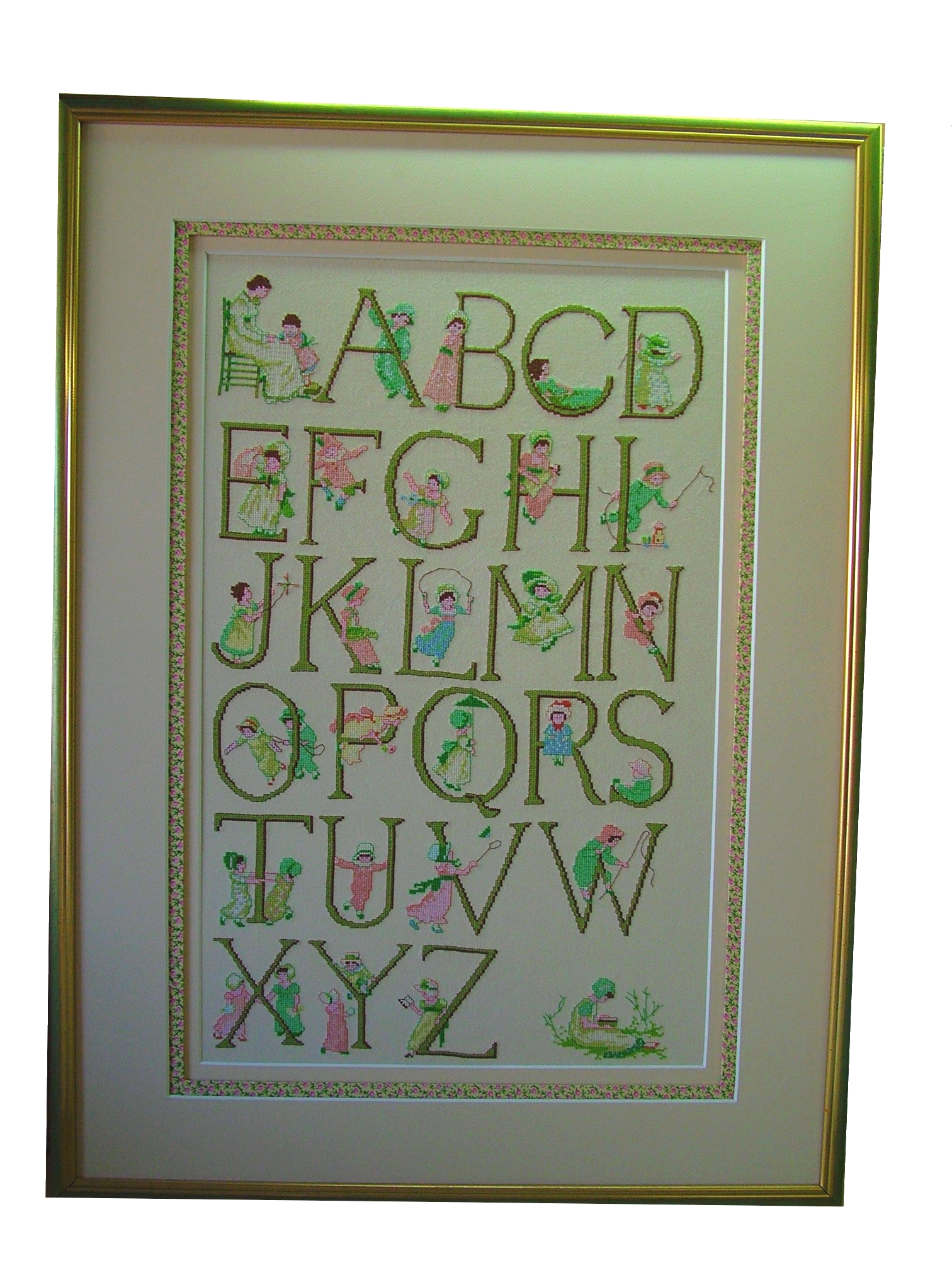 Voilà un bel ABCdaire brodé avec élégance et finesse ! De petits personnages aux vêtements colorés rappellent la douceur de l’enfance et invitent à la rêverie.
